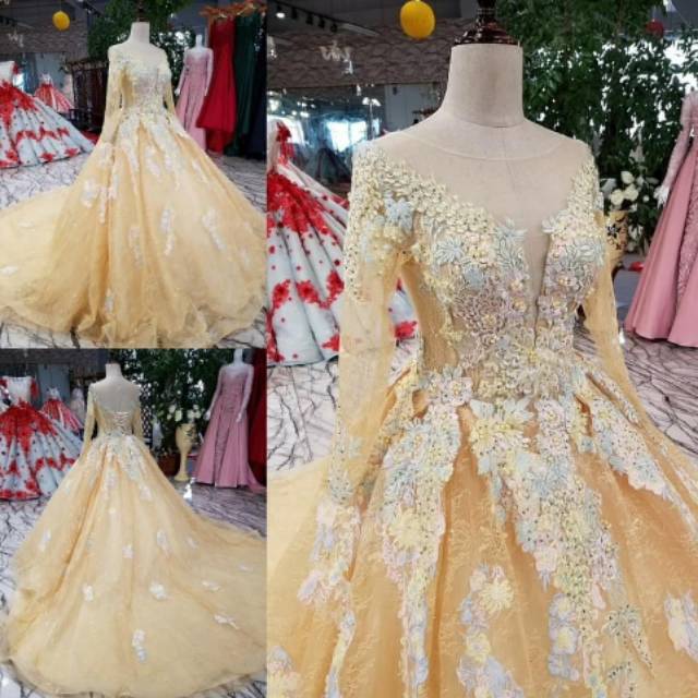Gaun pernikahan champagne ini rekomendasi busana pengantin bernuansa champagne yang sedang kekinian. Beli gaun pengantin ekor satin champagne gold long sleeve muslim wedding dress terbaru di shopee.